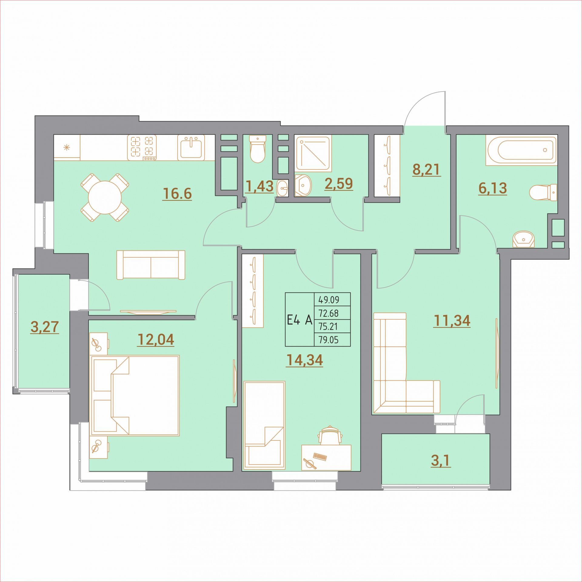 Купить квартиру №177, площадью 79.05 м2, на 18 этаже жилого комплекса ЖК Новый Горизонт - застройщик ЮгСпецСтрой