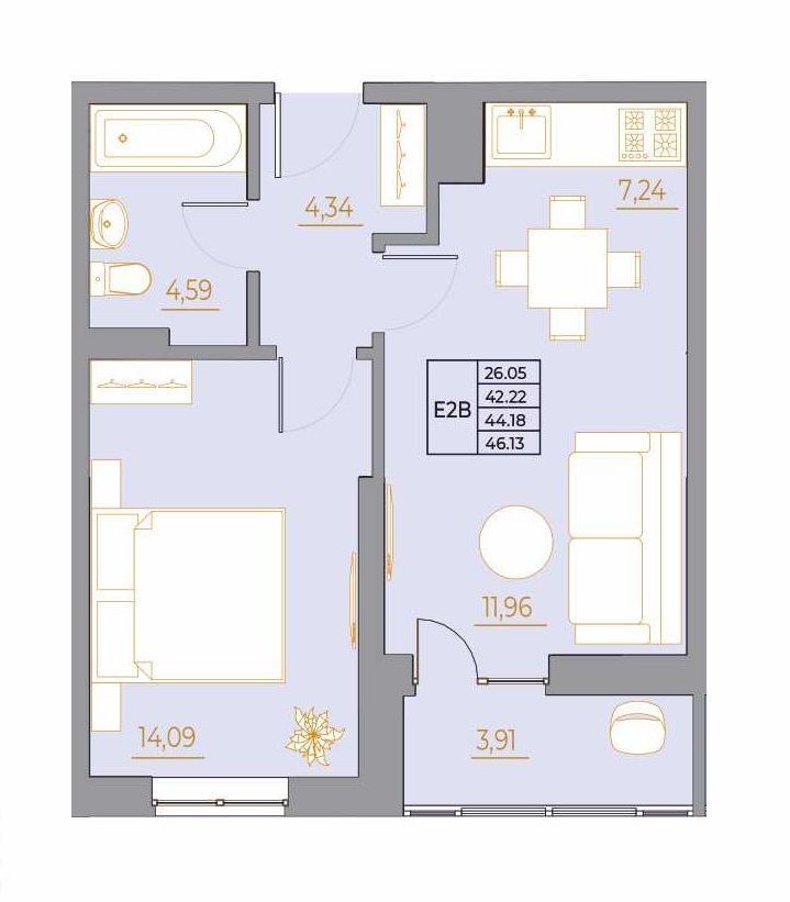 Площадь: 46.13 м2