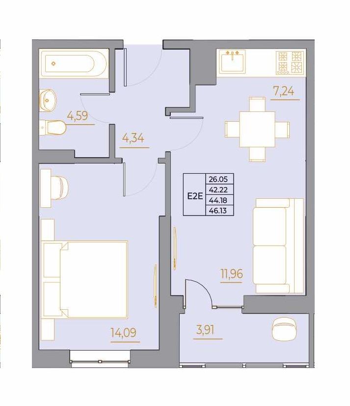 Купить квартиру №818, площадью 46.13 м2, на 18 этаже жилого комплекса Новый Горизонт - застройщик ЮгСпецСтрой